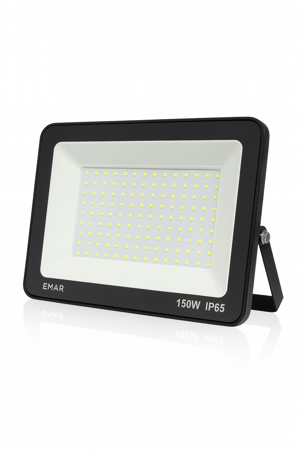 Reflector LED para exteriores con alto flujo luminoso, ideal para iluminar áreas grandes como patios, estacionamientos, fachadas y zonas industriales. Fabricado en aluminio y cristal con protección IP65, soporta lluvia, polvo y condiciones adversas. Entrega 15,000 lúmenes con luz de día (6000–6500K), ángulo de apertura de 120° y una eficiencia sobresaliente con consumo de solo 150W.
